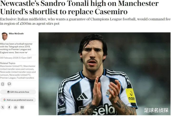 托纳利目下的合同2029年到期,因此意大利东说念主的价钱会很高,据悉纽卡对他的要价将在1亿英镑,况兼他们但愿留下这名中场。