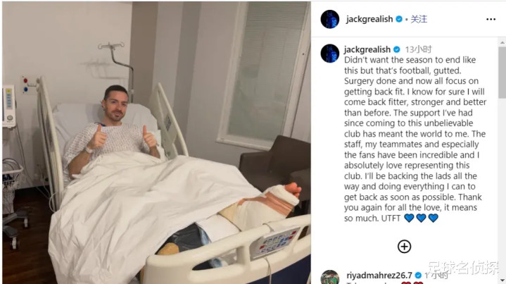 据悉这名30岁的球星将因此赛季报销,本赛季格拉利什从曼城租赁遵守于埃弗顿。