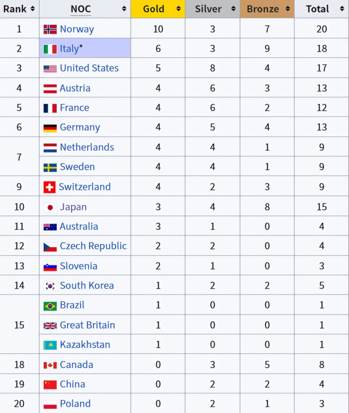 但本届冬奥,加拿大队大走背运,目下只拿下3银5铜,奖牌榜名列第18位,奖牌数目第11位。