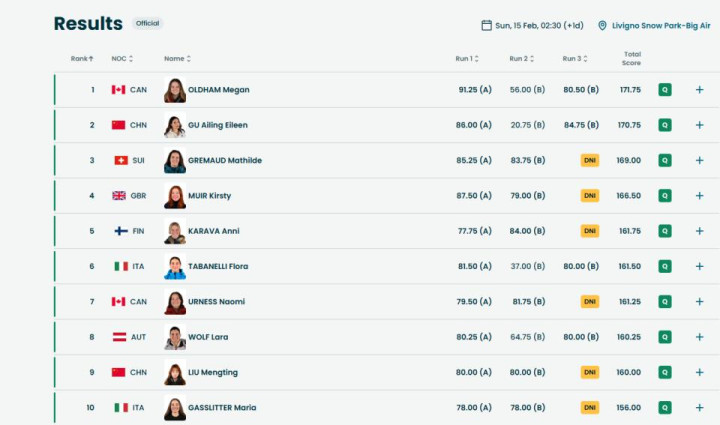 另外,谷爱凌今天以第二位身份晋级决赛的开脱式大跳台,加拿大选手排行第一,这个模式当下即是两国争金首选了!