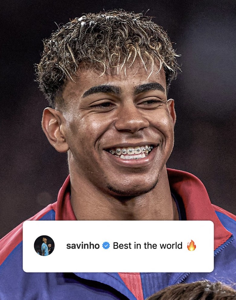 在亚马尔的酬酢媒体辩驳区,曼城边锋萨维尼奥留言写谈:“宇宙最好。”