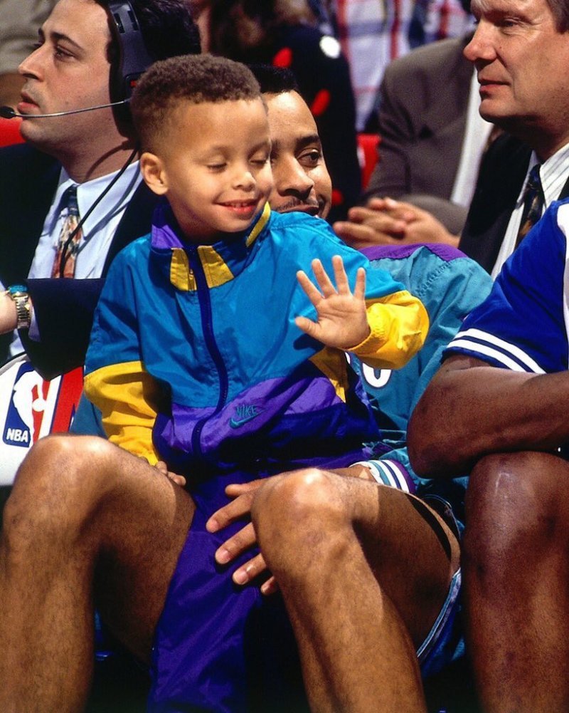1992年不雅看三分大赛的库里和2019年插足三分球大赛的库里。