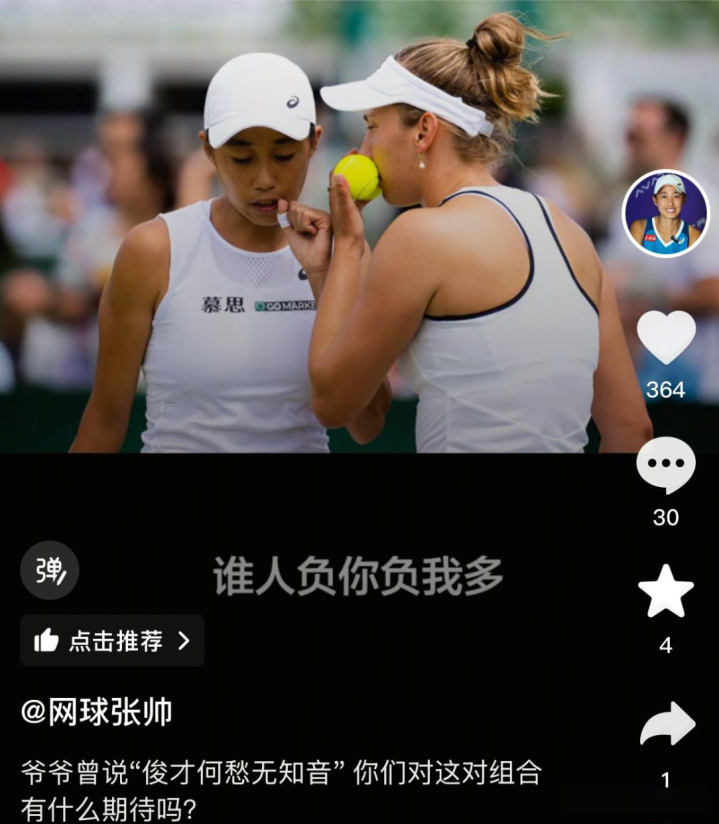 这则音问发布后,全球第一时辰惊奇的并不是张帅接续将劳摹实质进行到底,而是她的双打搭档来头不小,也从另一个侧面解说了张帅在网坛的东说念主缘居然好到了爆,一又友无处不在。